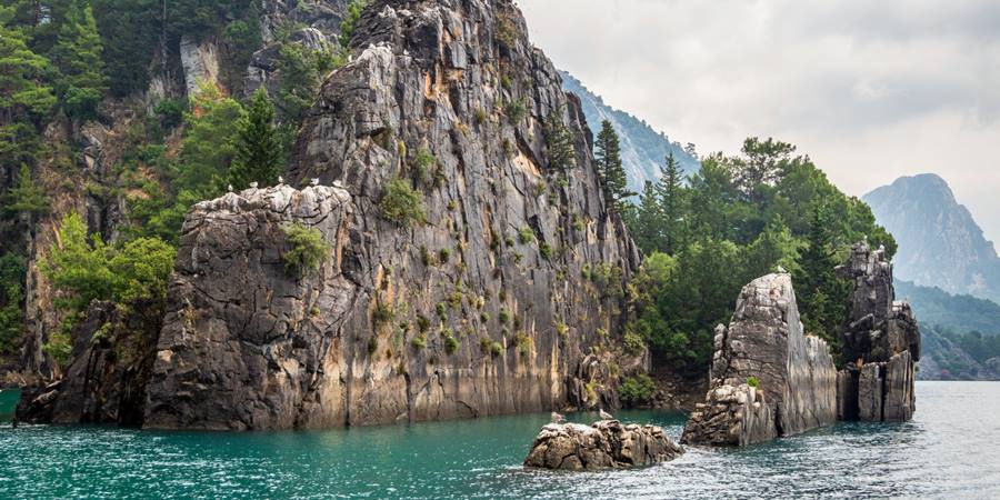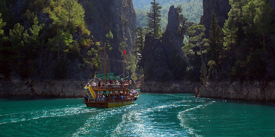 Станьте на якорь для 30-минутного купания в бирюзовых водах Грин Каньона, окруженного скалами и зеленью. Эта освежающая остановка — это изюминка Кемер лодочных экскурсий!