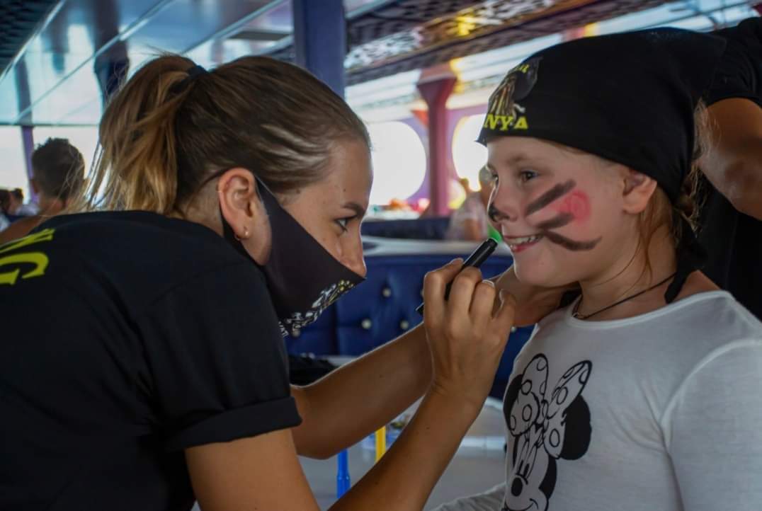 На протяжении этого легендарного тура на лодке вас будет развлекать профессиональная анимационная команда, представляющая разнообразные веселые мероприятия и шоу. Наслаждайтесь захватывающими конкурсами, такими как конкурс "Снимите шляпы", захватывающая игра "Охота на пиратов" и увлекательное "Турецкое танцевальное шоу". Дети могут весело провести время на мини-дискотеке с раскраской лица и пиратскими банданами.