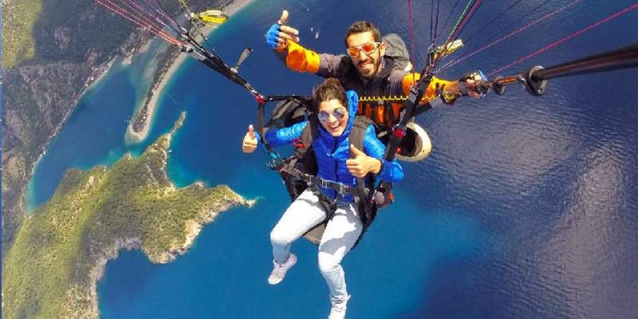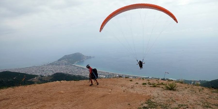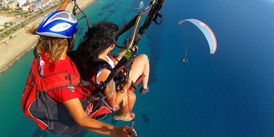 Тандемный парапланеризм (20 минут): Летите с сертифицированным пилотом около 20 минут, плавно приземляясь на пляж Клеопатры. 🪂