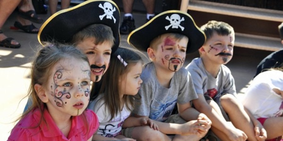 2. Отправление пиратского корабля (9:00 утра): Поднимитесь на двухпалубный пиратский корабль; дети получают пиратские банданы и раскраску лиц. 🏴‍☠️