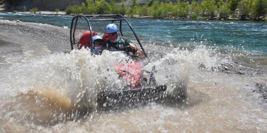 Переключитесь на багги 550 куб.см для 45-минутной поездки по тропам Каньона Кёпрюлю. В одиночку или в паре (водители от 14 лет), преодолевайте грязные тропы, ручьи и холмы. Завершите ополаскиванием в реке, чтобы охладиться! Лицензия не требуется – чистое удовольствие! 💦